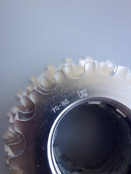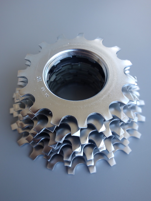 Hard to find, last generation eight speed version of Shimano’s proprietary UniGlide freehub cassette. UniGlide was fairly short lived and used a locking small sprocket to hold the rest of the sprockets on like the Suntour cassette system, the later freehub bodies were compatible with HyperGlide too. This eight speed cassette will not work with the Dura-Ace rear hub but will work with all other 8 speed UniGlide compatible rear hubs, it is ideal for the 600 (FH-6402) and 105 (FH-1056) hubs.